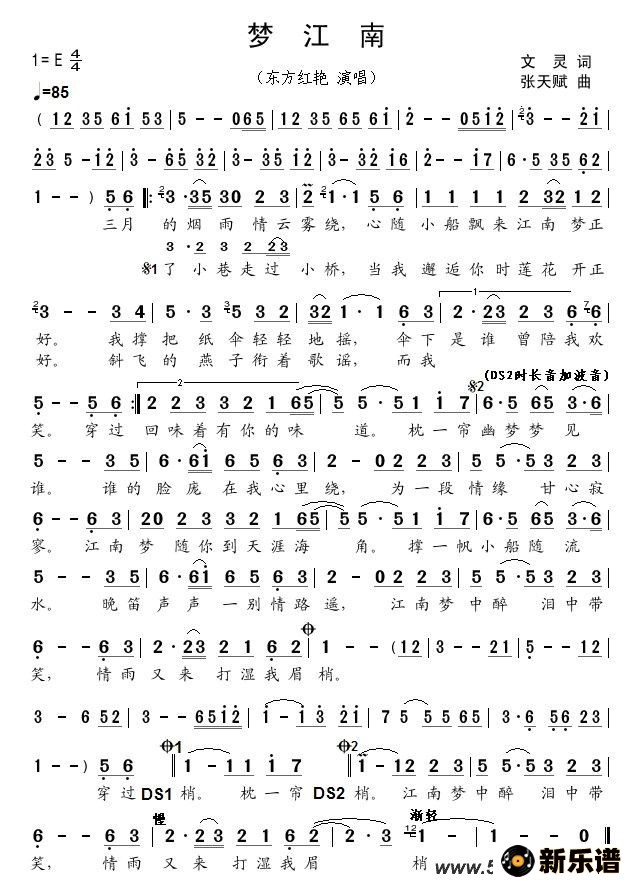 东方红艳演唱的梦江南歌词,梦江南简谱.