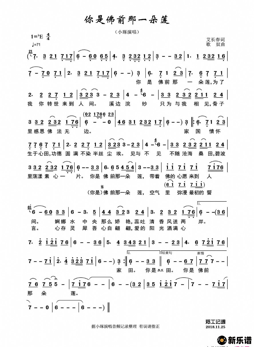 《你是佛前那一朵莲》简谱 小琢-郑工制谱