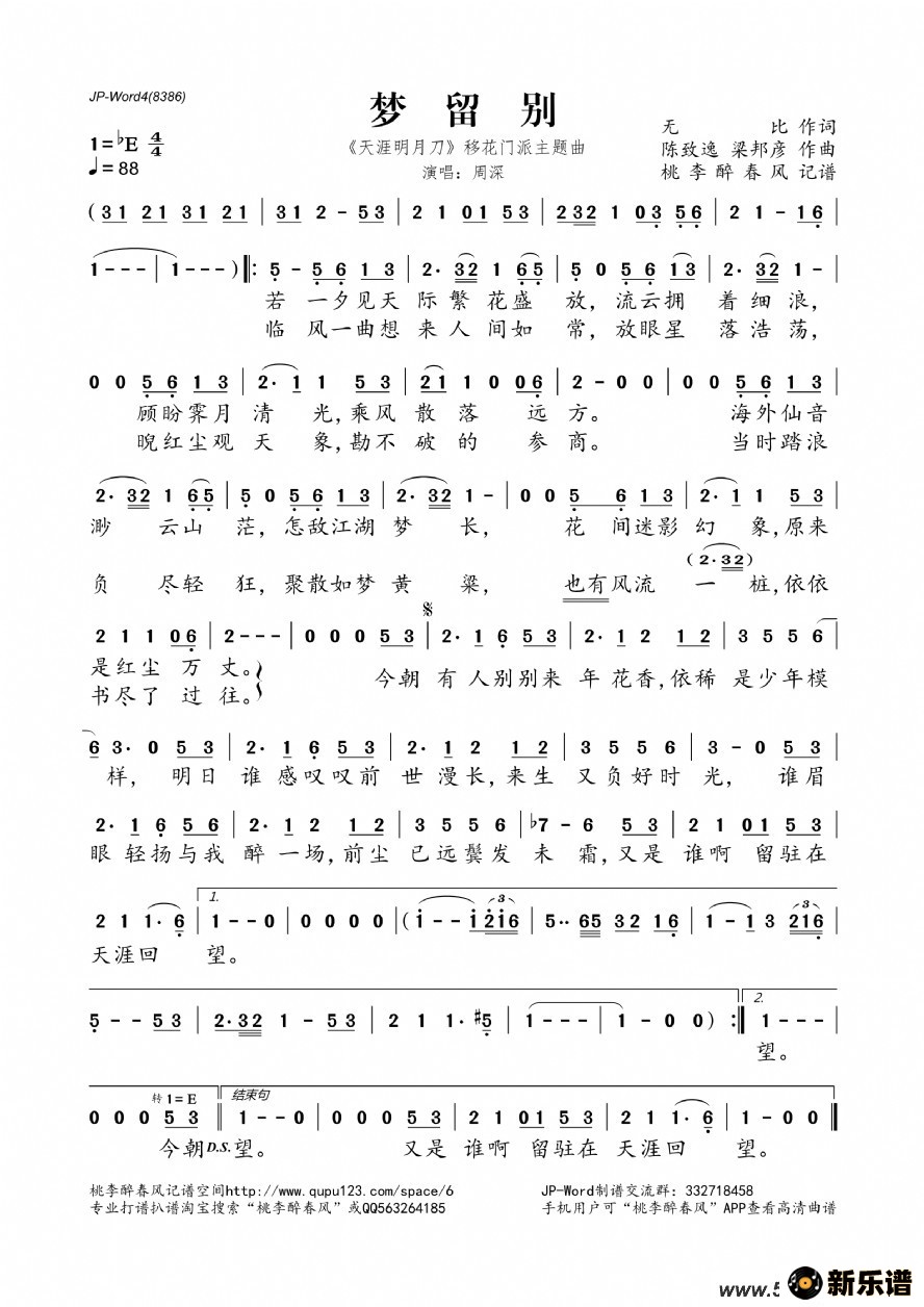 周深 - 梦留别 (《天涯明月刀》移花门派主题曲)作词:无比