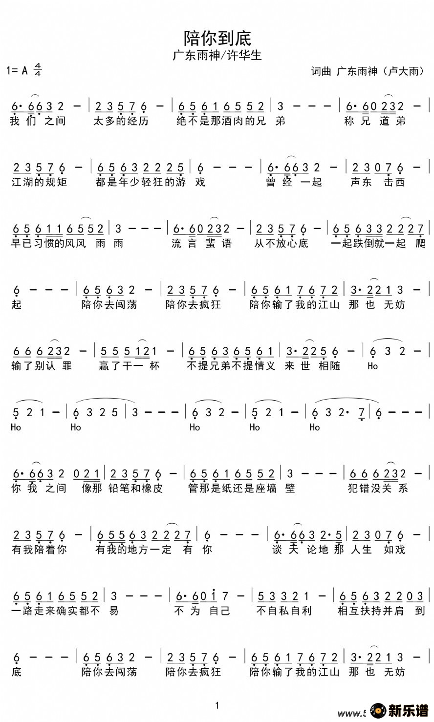广东雨神演唱的陪你到底(网络剧《东斜西独》主题曲)歌词,陪你到底(网络剧《东斜西独》主题曲)简谱.