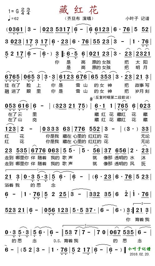 《藏红花》简谱 齐旦布-小叶子制谱