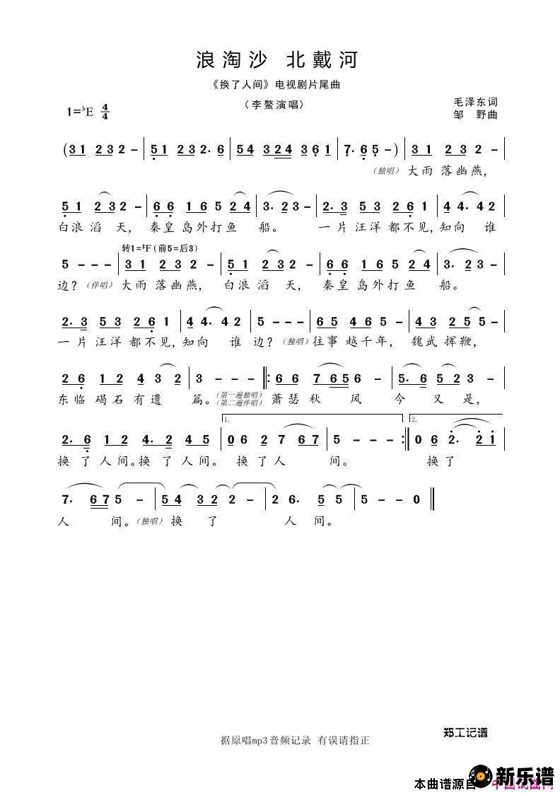 《浪淘沙北戴河》简谱 李鳌-郑工制谱