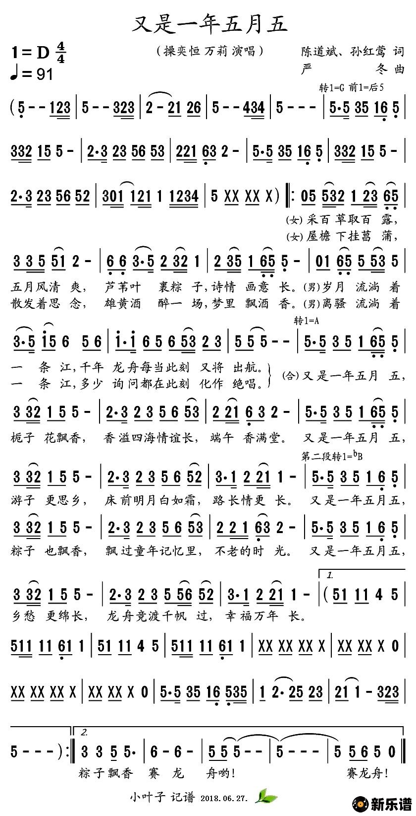 《又是一年五月五》简谱 操奕恒/万莉-小叶子制谱