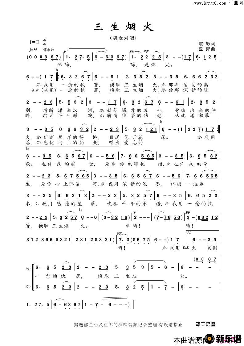 > 三生烟火简谱