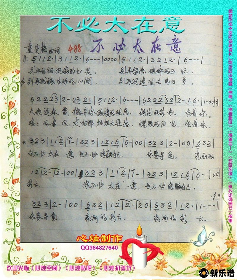 《不必太在意》简谱 佚名-心烛制谱