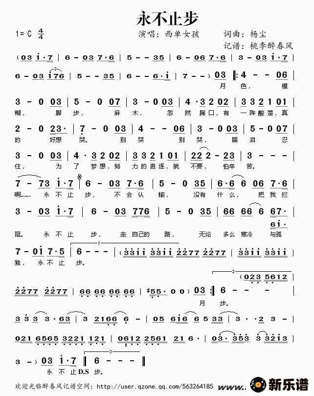 《永不止步》简谱 西单女孩-桃李醉春风制谱