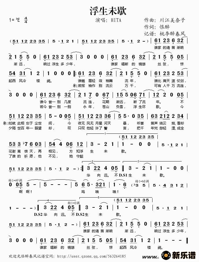 《浮生未歇》简谱 HITA-桃李醉春风制谱