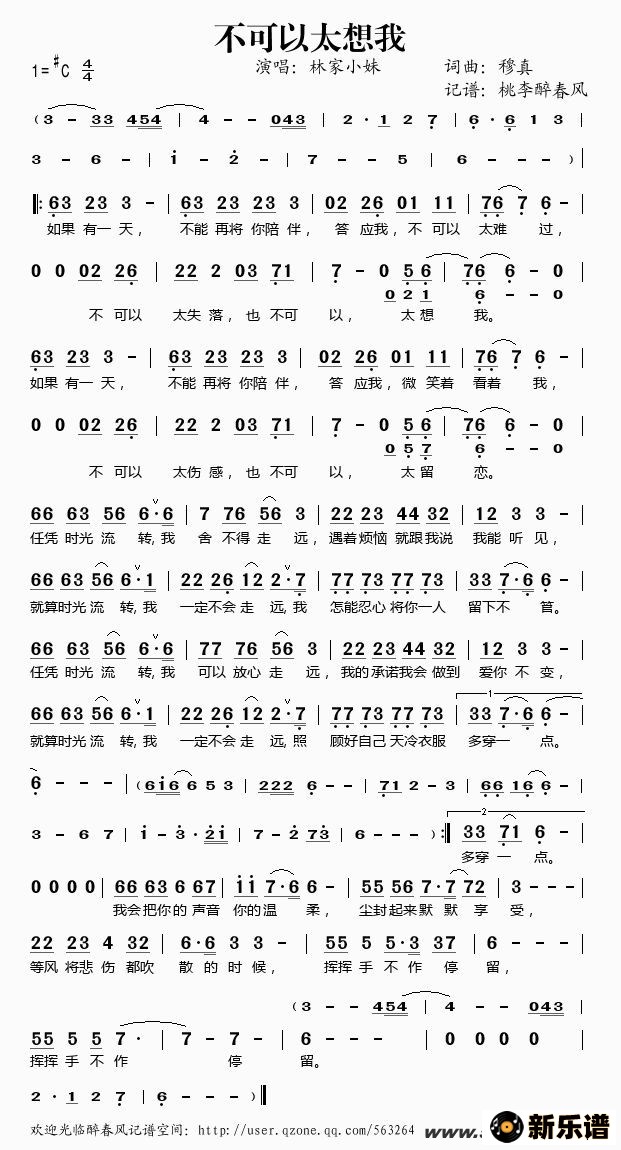 《不可以太想我》简谱 林家小妹-桃李醉春风制谱