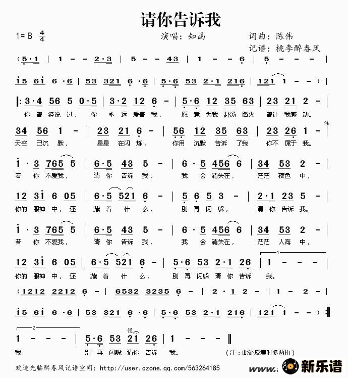 知函演唱的请你告诉我歌词,请你告诉我简谱.