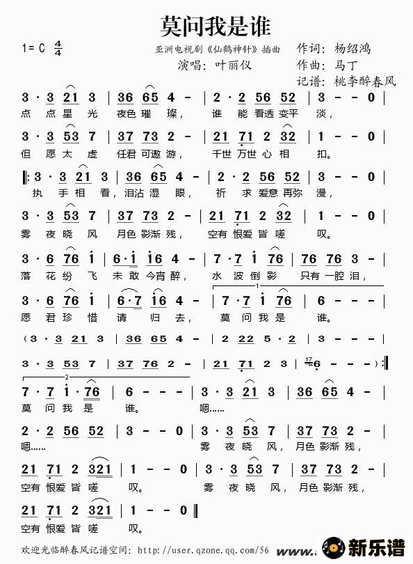 《莫问我是谁》简谱 叶丽仪-桃李醉春风制谱
