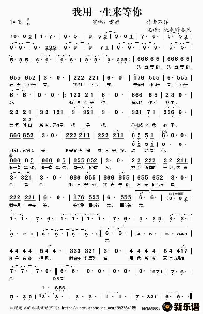 《我用一生来等你》简谱 雷婷-桃李醉春风制谱
