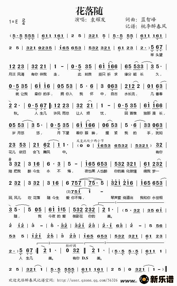 《花落随》简谱 袁耀发-桃李醉春风制谱