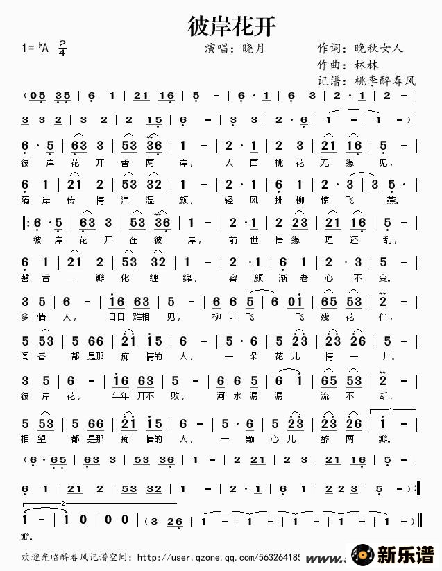 晓月演唱的彼岸花开歌词,彼岸花开简谱.