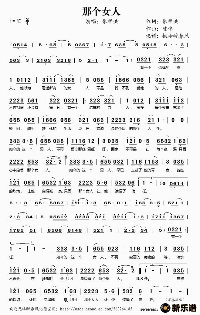 《那个女人》简谱 张祥洪-桃李醉春风制谱