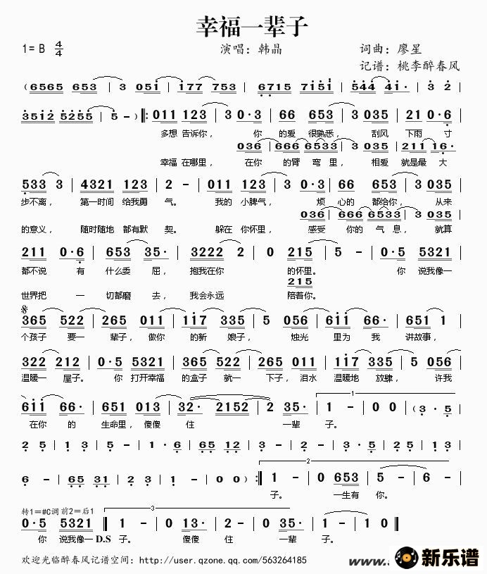 《幸福一辈子》简谱 韩晶-桃李醉春风制谱