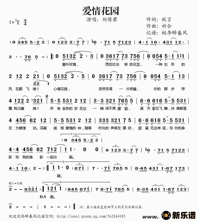 《爱情花园》简谱 刘惜君-桃李醉春风制谱