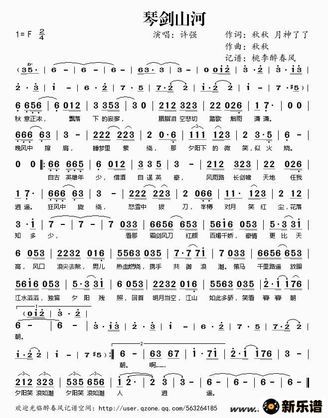 《琴剑山河》简谱 许强-桃李醉春风制谱