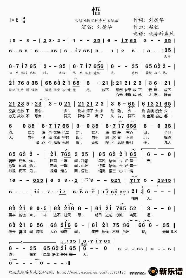 《悟(电影《新少林寺》主题曲)》简谱 刘德华-桃李醉春风制谱