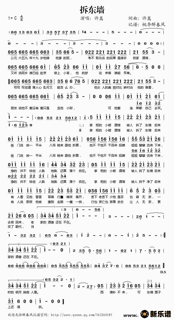 许嵩演唱的拆东墙歌词,拆东墙简谱.