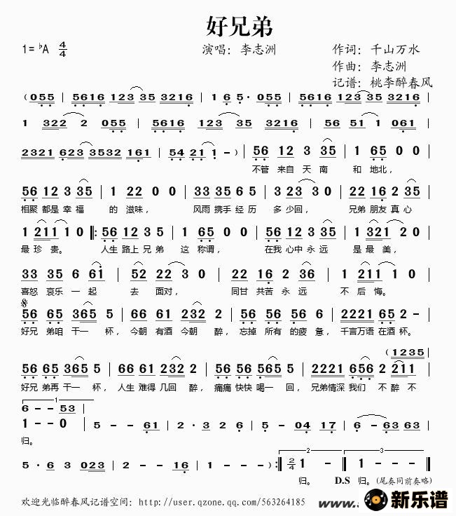 《好兄弟》简谱 李志洲-桃李醉春风制谱
