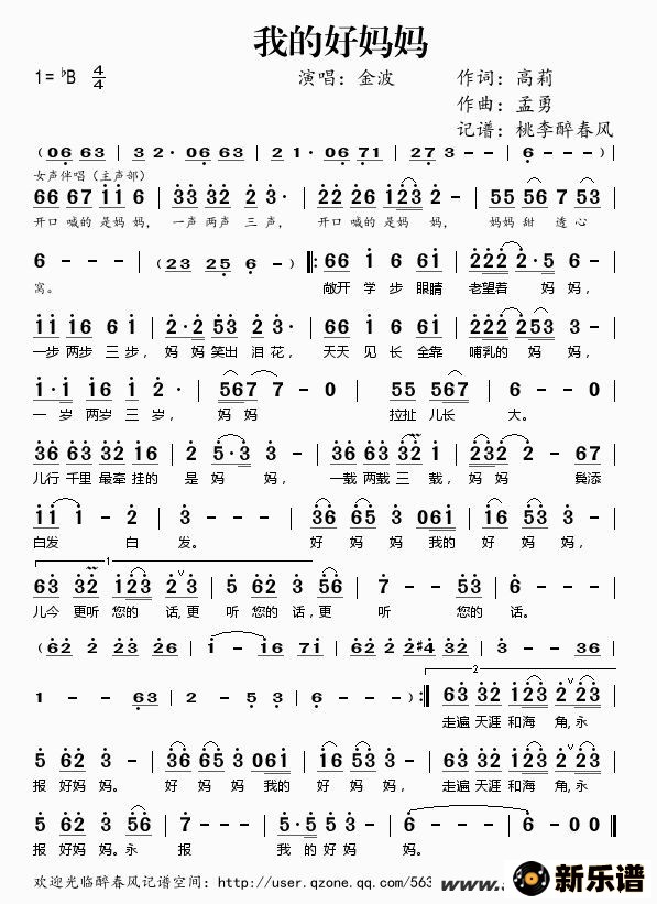 《我的好妈妈》简谱 金波-桃李醉春风制谱