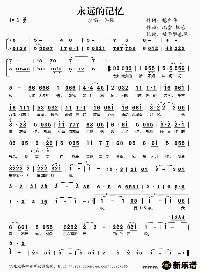 永远的记忆/许强 相关曲谱