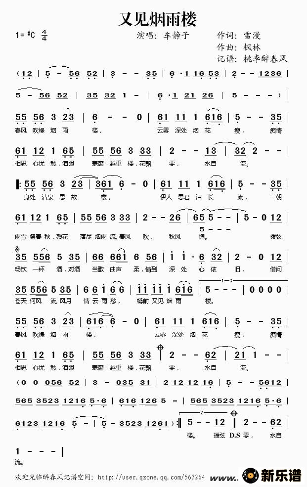 《又见烟雨楼》简谱 车静子-桃李醉春风制谱