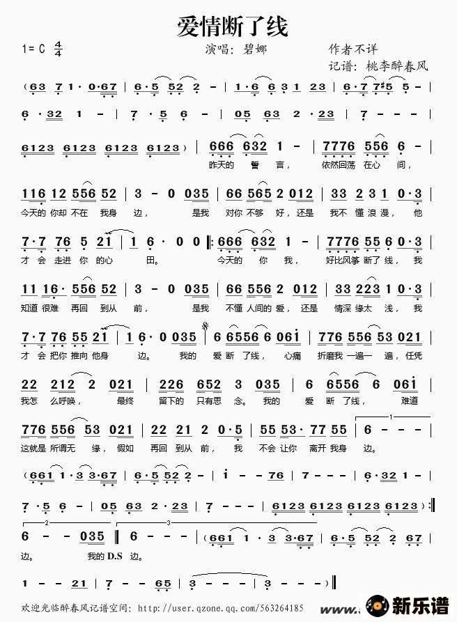 《爱情断了线》简谱 碧娜-桃李醉春风制谱