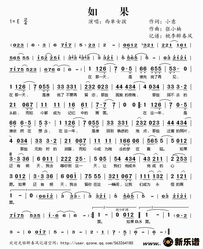 《如果》简谱 西单女孩-桃李醉春风制谱