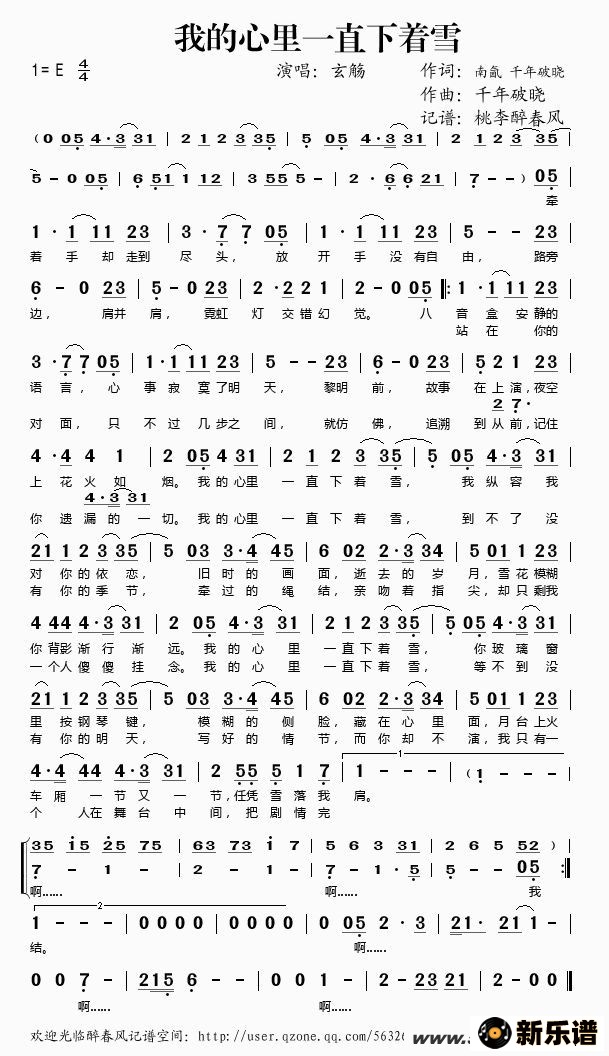 玄觞演唱的我的心里一直下着雪歌词,我的心里一直下着雪简谱.