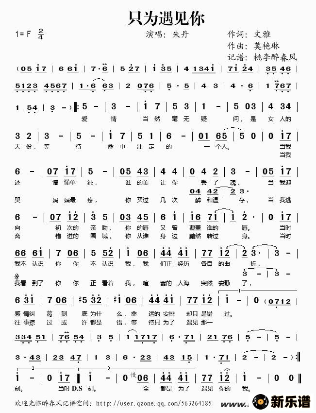 朱丹演唱的只为遇见你歌词,只为遇见你简谱.