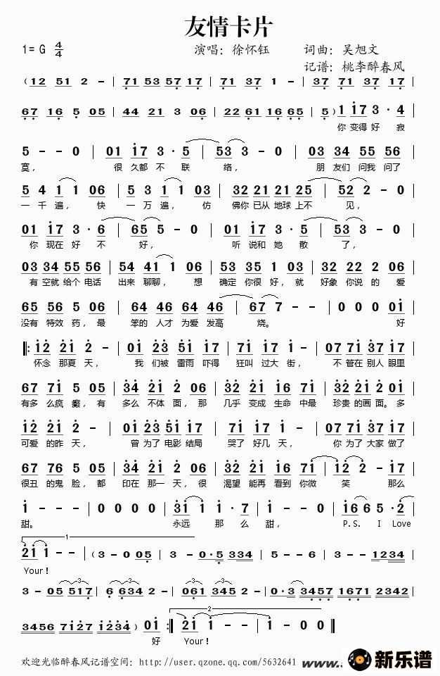 《友情卡片》简谱 徐怀钰-桃李醉春风制谱