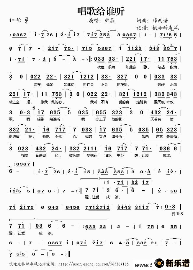 《唱歌给谁听》简谱 韩晶-桃李醉春风制谱