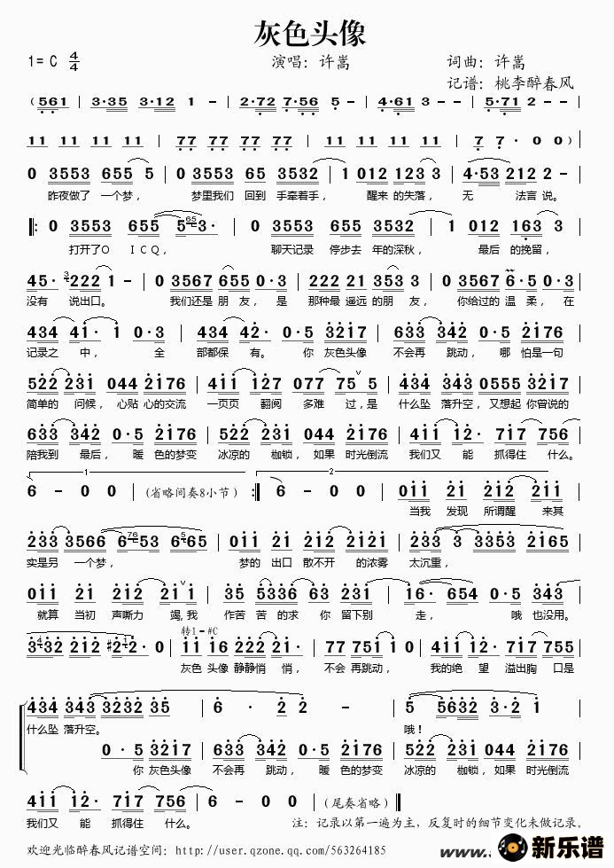 《灰色头像》简谱 许嵩-桃李醉春风制谱