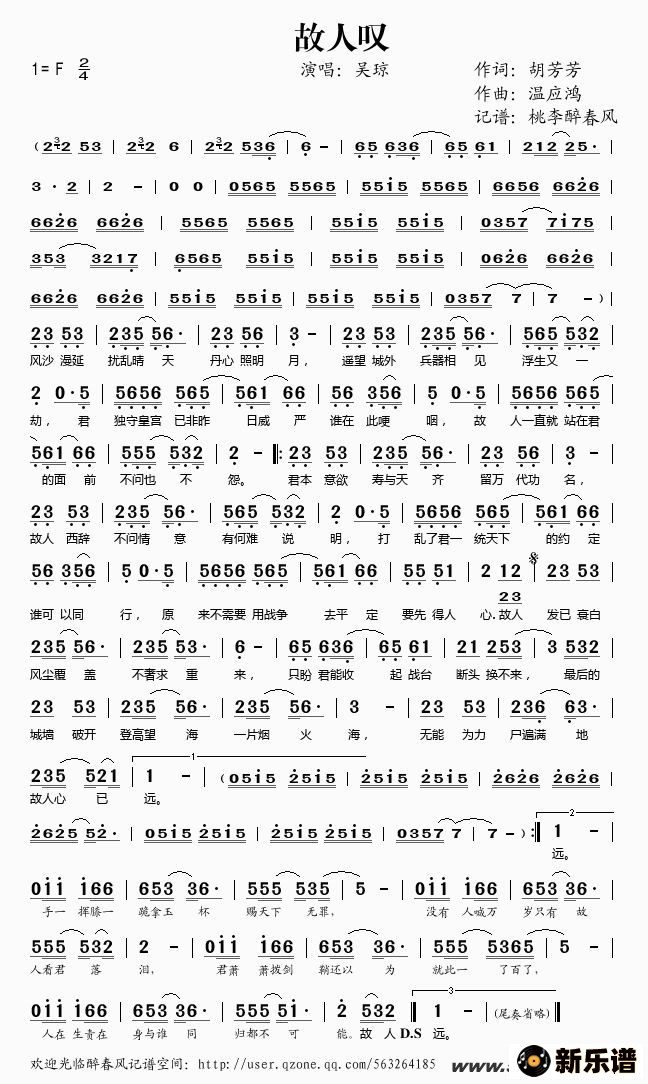 吴琼演唱的故人叹歌词,故人叹简谱.
