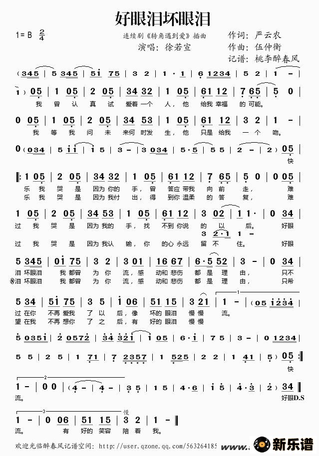 徐若瑄演唱的好眼泪坏眼泪(《转角遇到爱》插曲)歌词,好眼泪坏眼泪(《转角遇到爱》插曲)简谱.