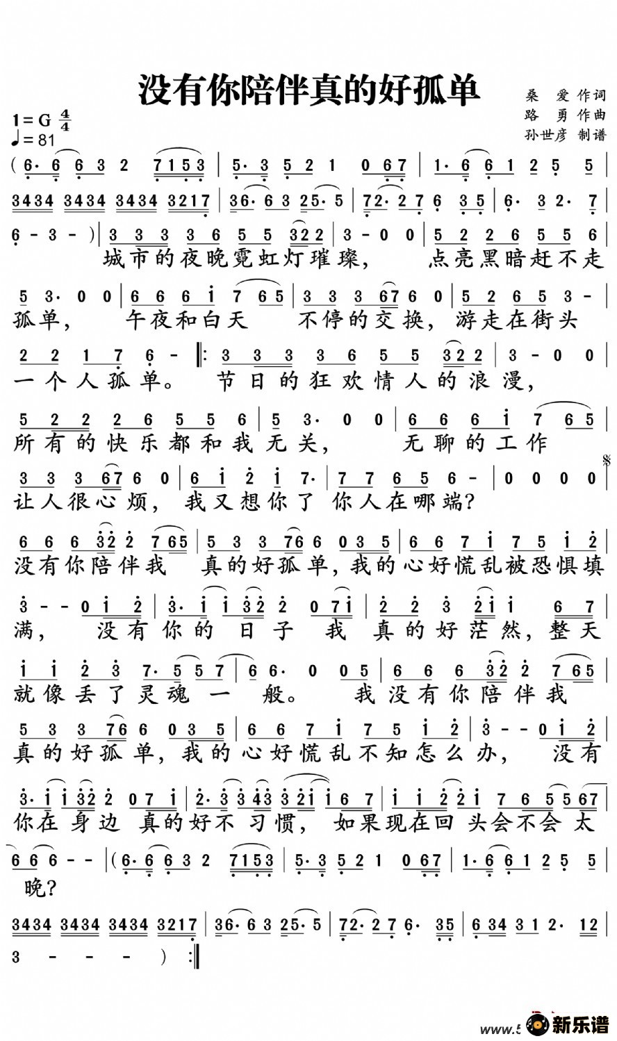 梦然演唱的没有你陪伴真的好孤单歌词,没有你陪伴真的好孤单简谱.