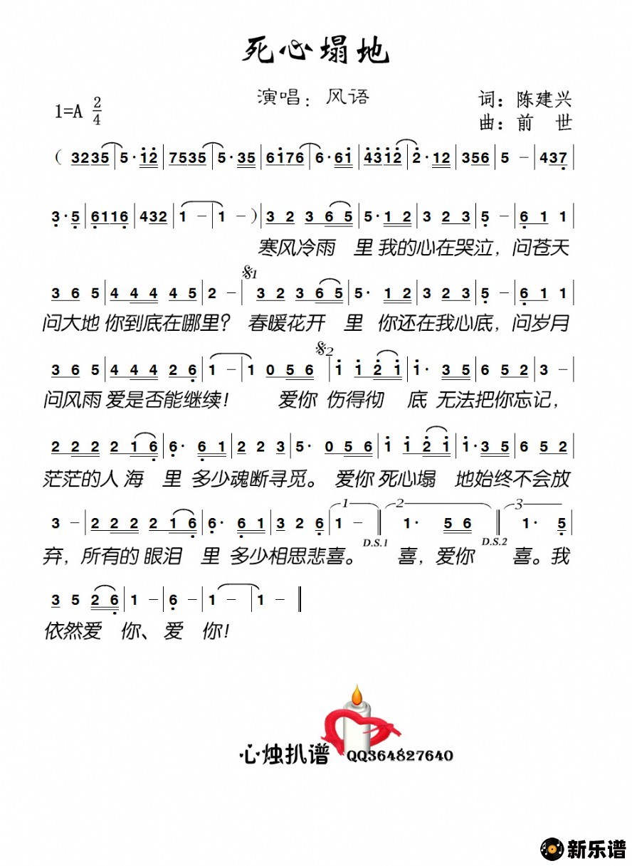 《死心塌地》简谱 风语-心烛制谱