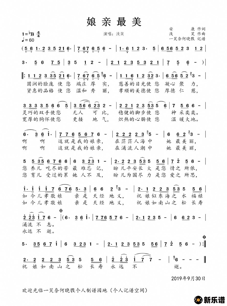 《娘亲最美》简谱 浅笑-一笑奈何晓斅制谱