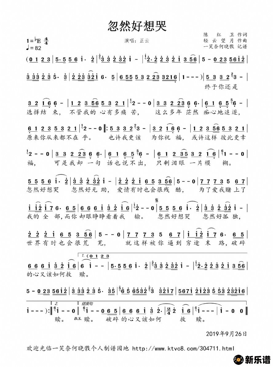 《忽然好想哭》简谱 正云-一笑奈何晓斅制谱
