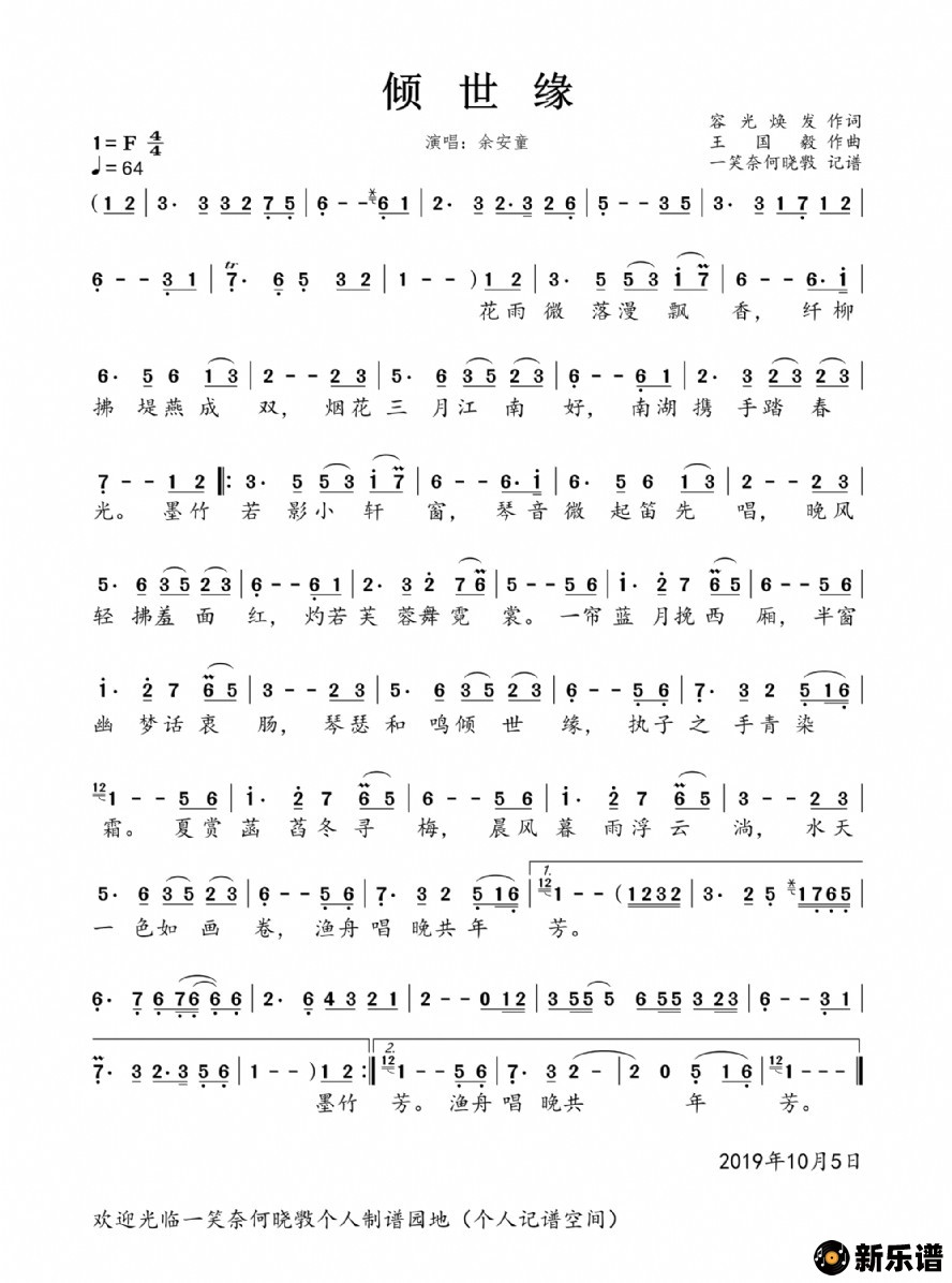 《倾世缘》简谱 余安童-一笑奈何晓斅制谱