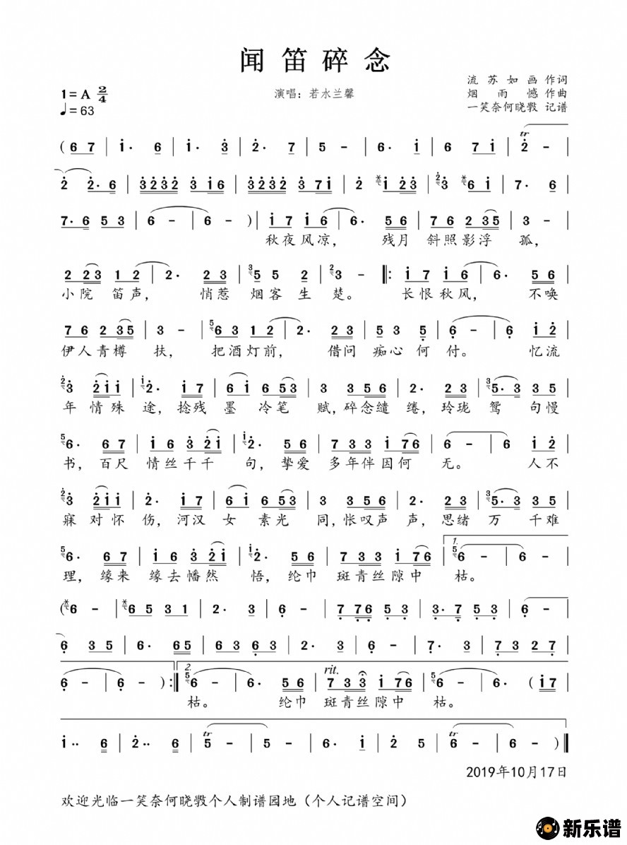 《闻笛碎念(女版)》简谱 若水兰馨-一笑奈何晓斅制谱