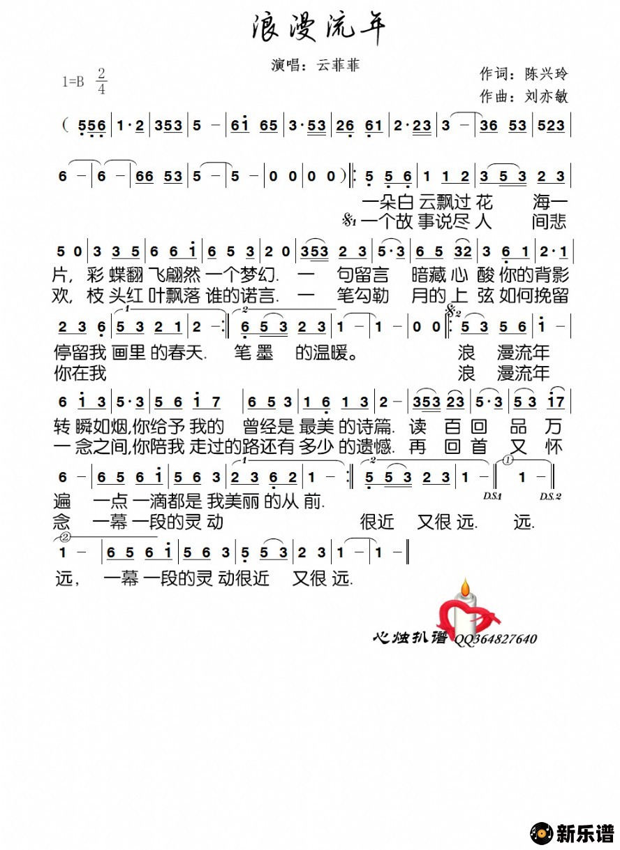 《浪漫流年》简谱 云菲菲-心烛制谱