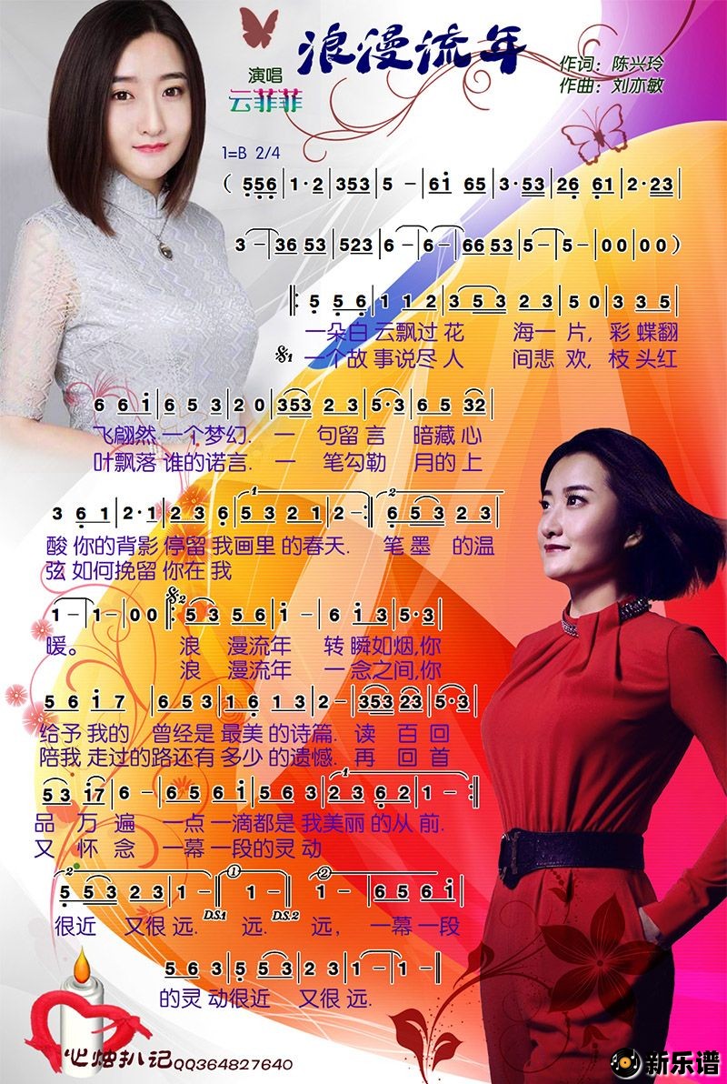 云菲菲演唱的浪漫流年歌词,浪漫流年简谱.