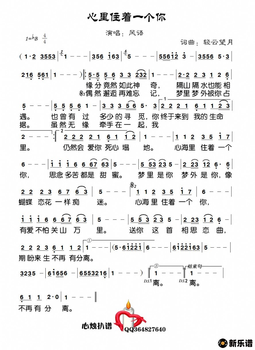 风语演唱的心里住着一个你歌词,心里住着一个你简谱.