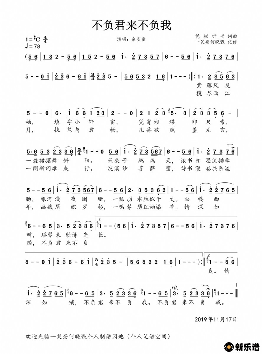 《不负君来不负我(男版)》简谱 余安童-一笑奈何晓斅制谱