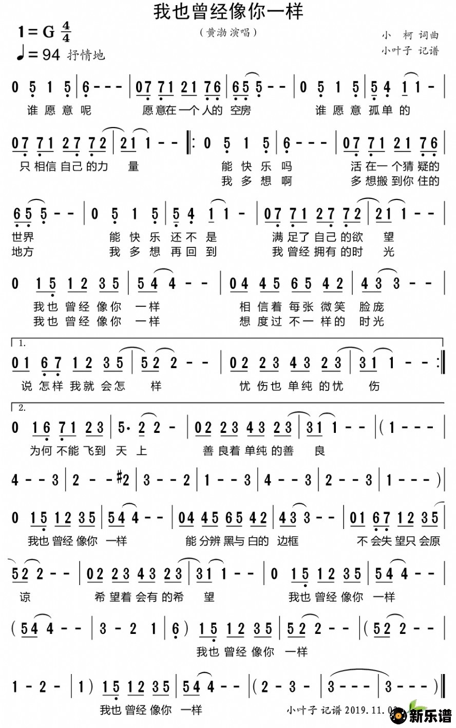 《我也曾经像你一样》简谱 黄渤-小叶子制谱