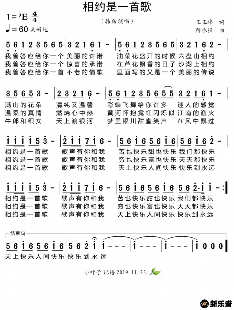 《相约是一首歌》简谱 韩磊-小叶子制谱