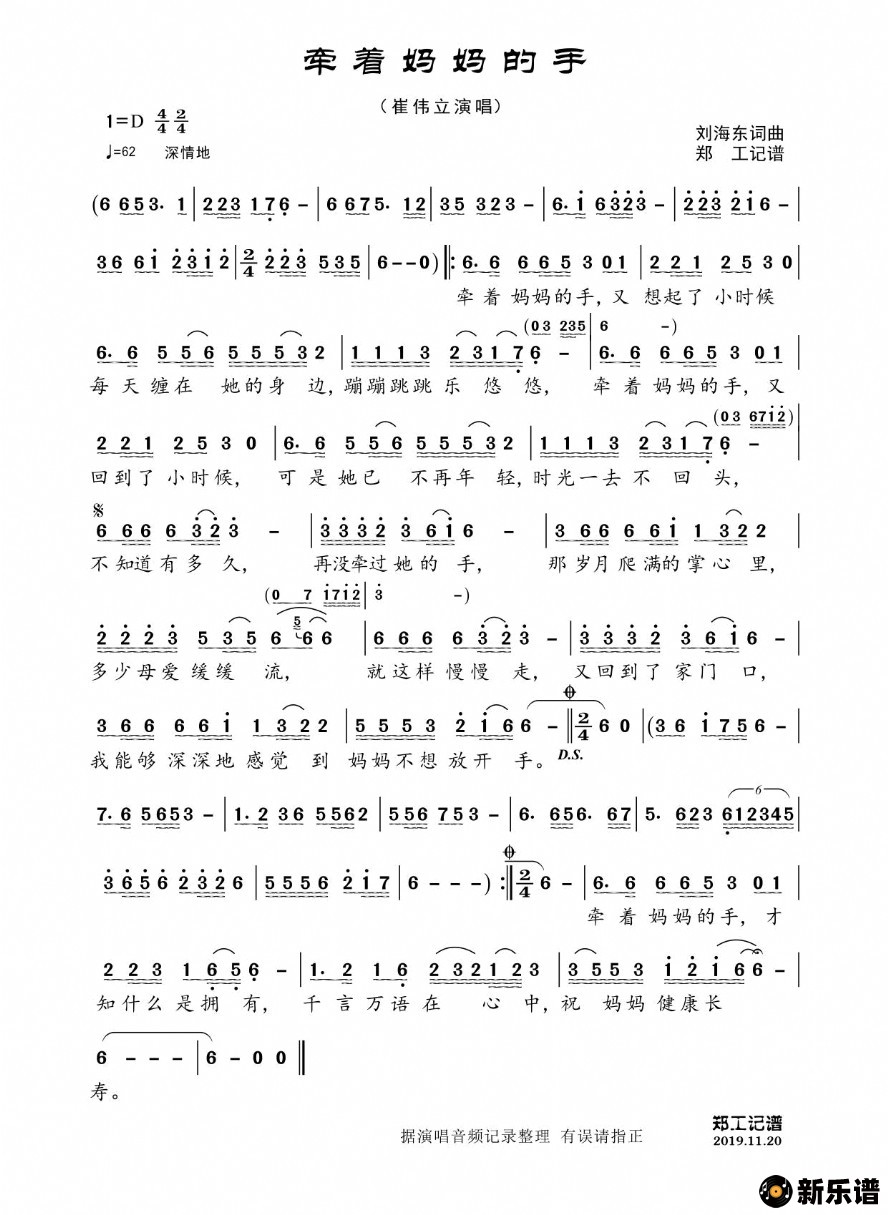 《牵着妈妈的手》简谱 崔伟立-郑工制谱