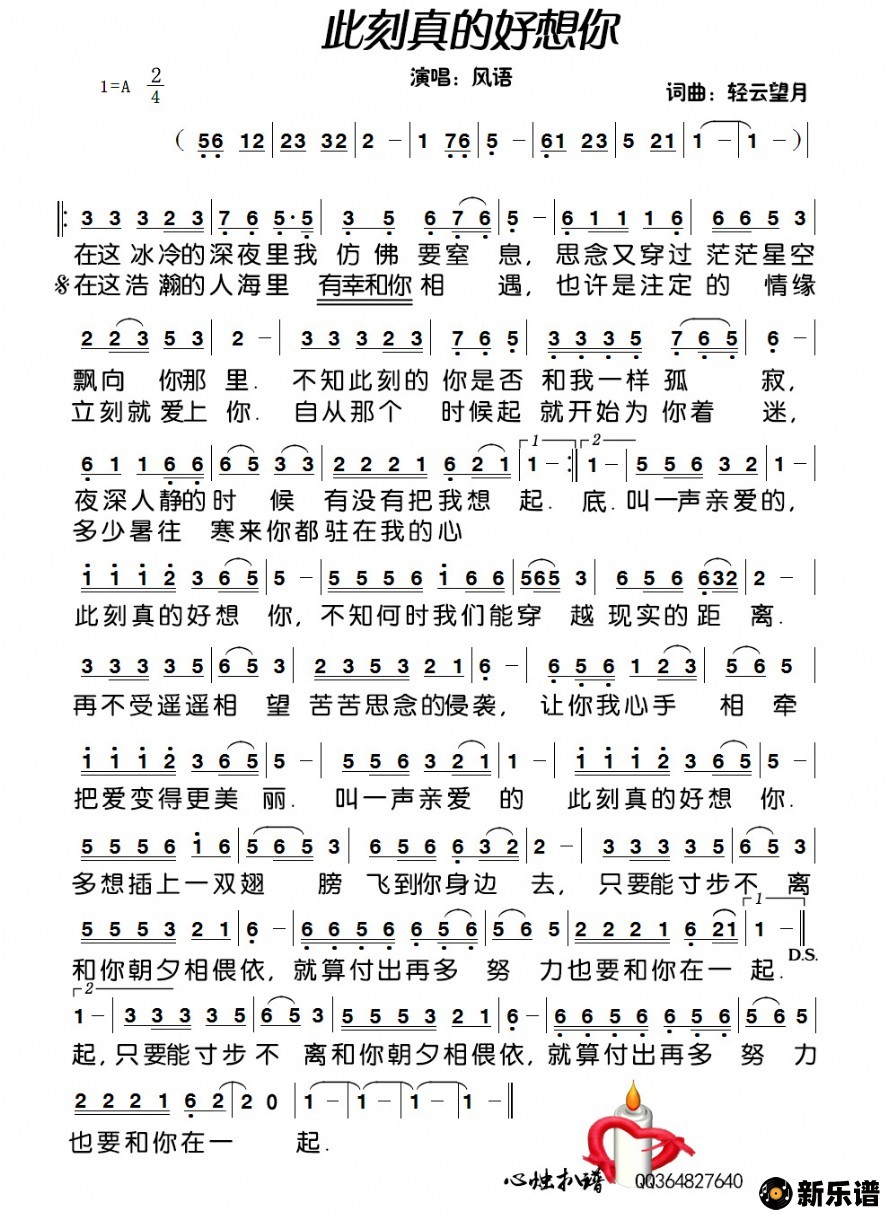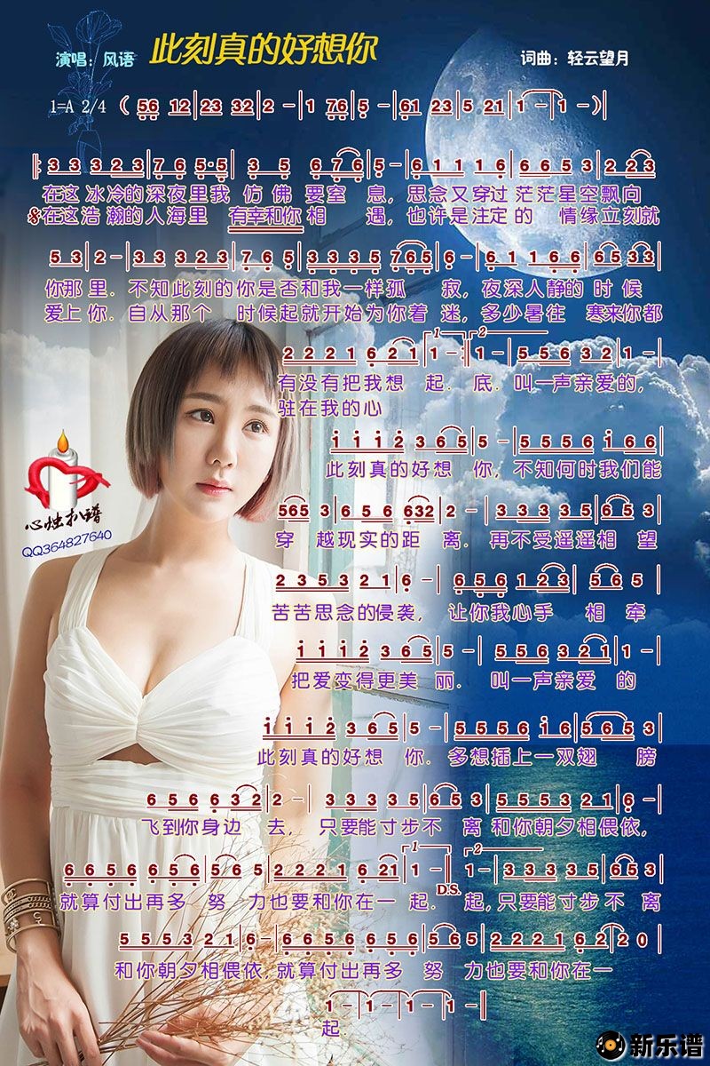 风语演唱的此刻真的好想你歌词,此刻真的好想你简谱.